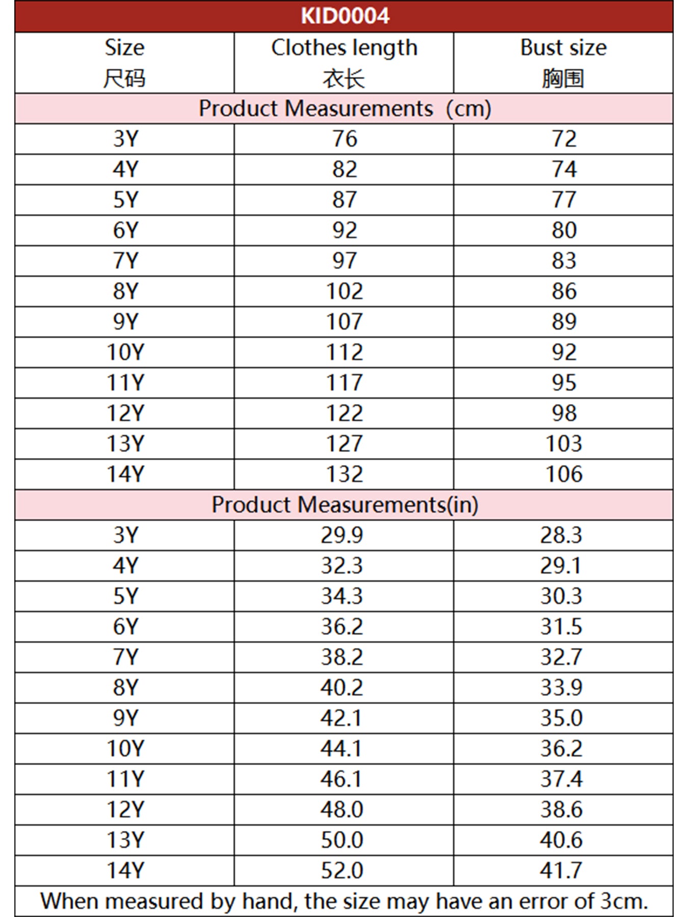 Please check the size chart for accurate sizes. It may be off by 1-3cm.